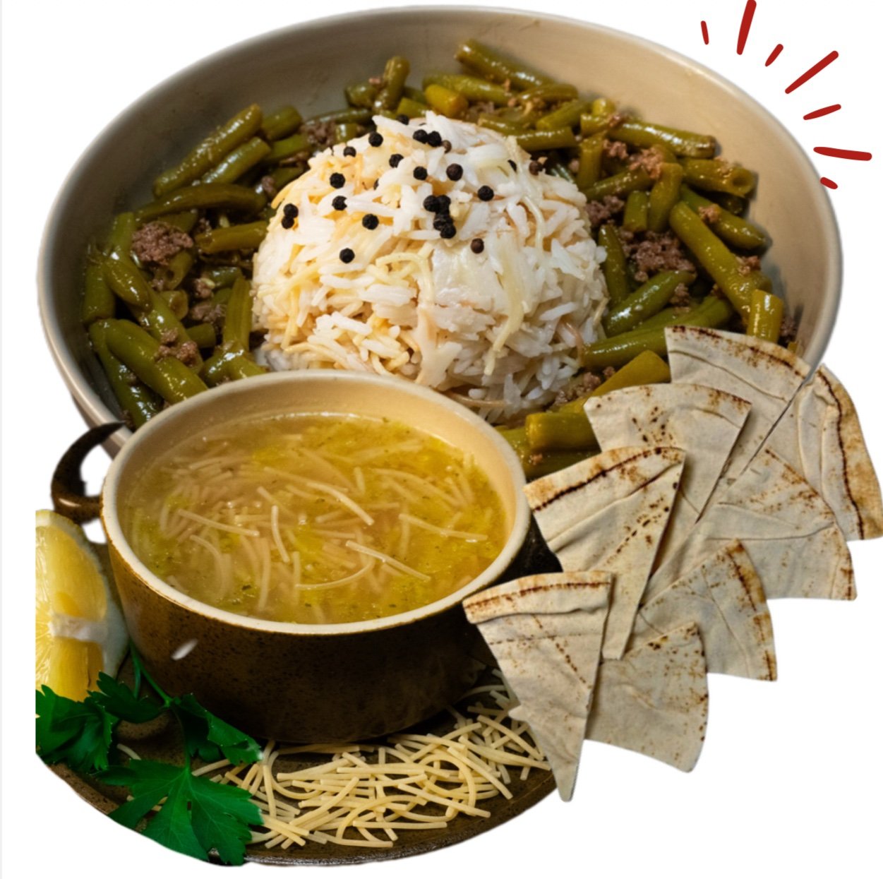 1x Fasulia + 1x Arabisch brood + 1x Syrische vermicellisoep
