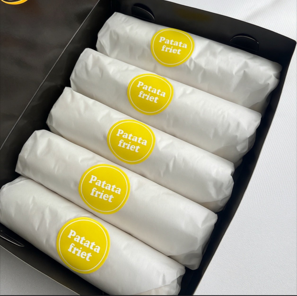 Patat, sla, augurken, speciale kruiden, mayonaise, ketchup, tomaat, Arabisch brood.